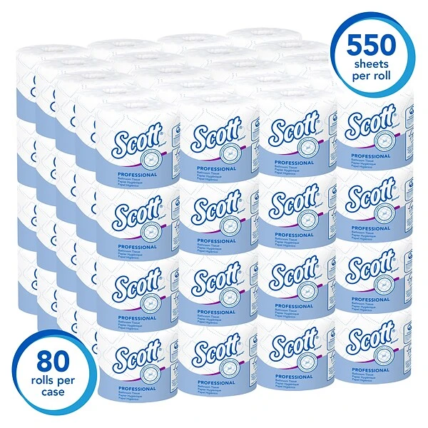 Effective & Practical Scott Bath Tissue is affordable enough to be used in high-traffic areas, as in retail, hotels, health care facilities, but still gives your restroom guests functionality they can trust.Low-MaintenanceSince the standard rolls are compatible with most universal dispensers, you can use them just about anywhere. Plus, with 550 sheets per roll and large, bulk cases, you can reduce maintenance time.