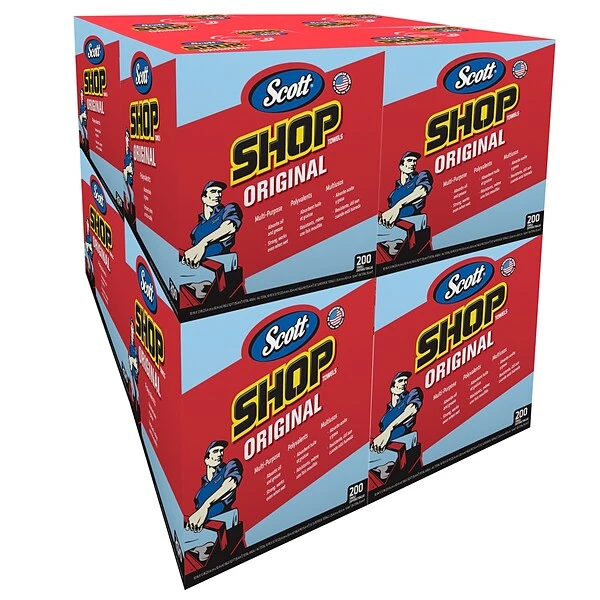 Access a shop towel when you need it with this pop-up box of shop towels. With 200 sheets per box and eight boxes per carton, there will be plenty of shop towels available for a convenient clean-up. These Scott shop towels are designed to clean up grease and oils but can also be used to polish and detail other parts of automobiles.