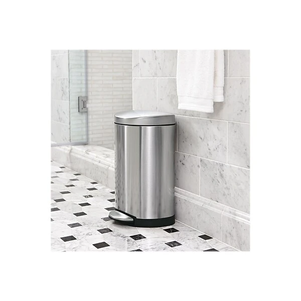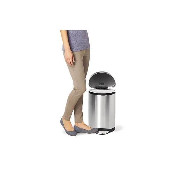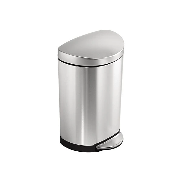 The simplehuman space-efficient semi-round step can is perfect for smaller spaces like a bathroom or an office. The strong steel pedal is built to last, and lid shox technology ensures a smooth, silent close every time. A removable inner bucket makes for easy trash disposal.