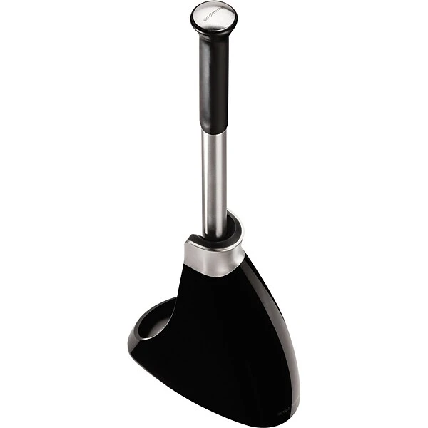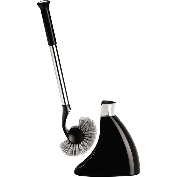 The simplehuman toilet brush has a specially designed crescent shape to reach hard-to-clean areas around the rim. A unique magnetic collar secures the cover to the toilet brush so you can carry them together without any drips. The slim, dome-shaped cover conveniently stores the toilet brush when not in use, keeping it hygienic and discreetly hidden.