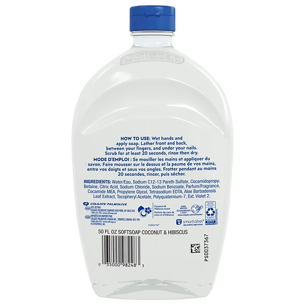 This Softsoap moisturizing liquid hand soap refill with coconut and hibiscus scent is an economical alternative to bar soap. It hydrates skin and leaves hands clean.