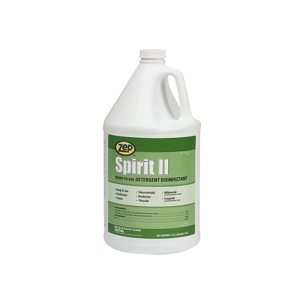 Zep Spirit II is a ready-to-use, non-phenolic, germicidal cleaner and deodorant. It will quickly cut through grease and heavy soil. Spirit II kills the virus that causes COVID-19** (SARS-Related Coronavirus 2) on hard non-porous surfaces in 60 seconds when used according to disinfection directions. **SARS-Related Coronavirus 2.